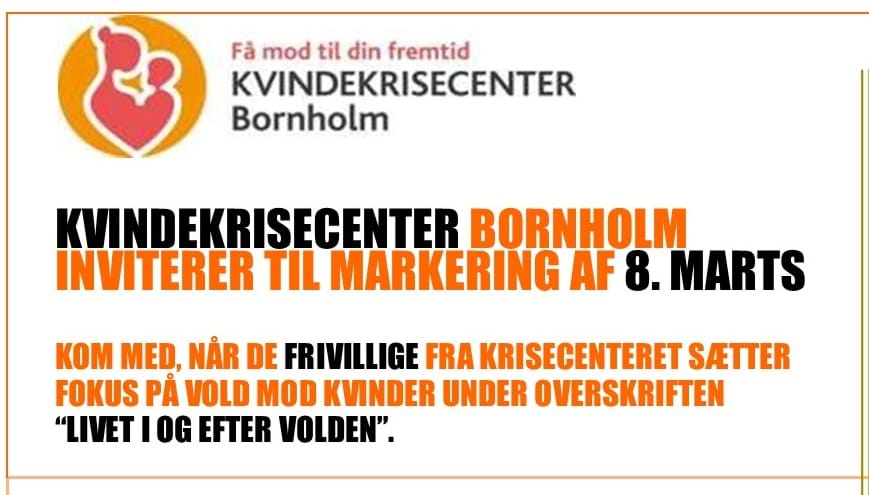 Kvindekrisecenter Bornholm & Kvindernes Internationale Kampdag8. marts 202613.00–16.00Livet i og efter volden -